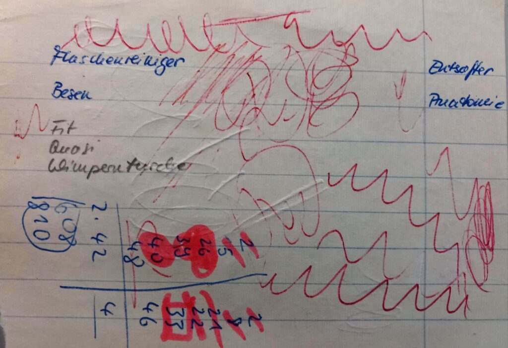 oder auch banale Einkaufszettel und erinnerungswürdige Etiketten, wenn der Wein wohl besonders gut geschmeckt hat …